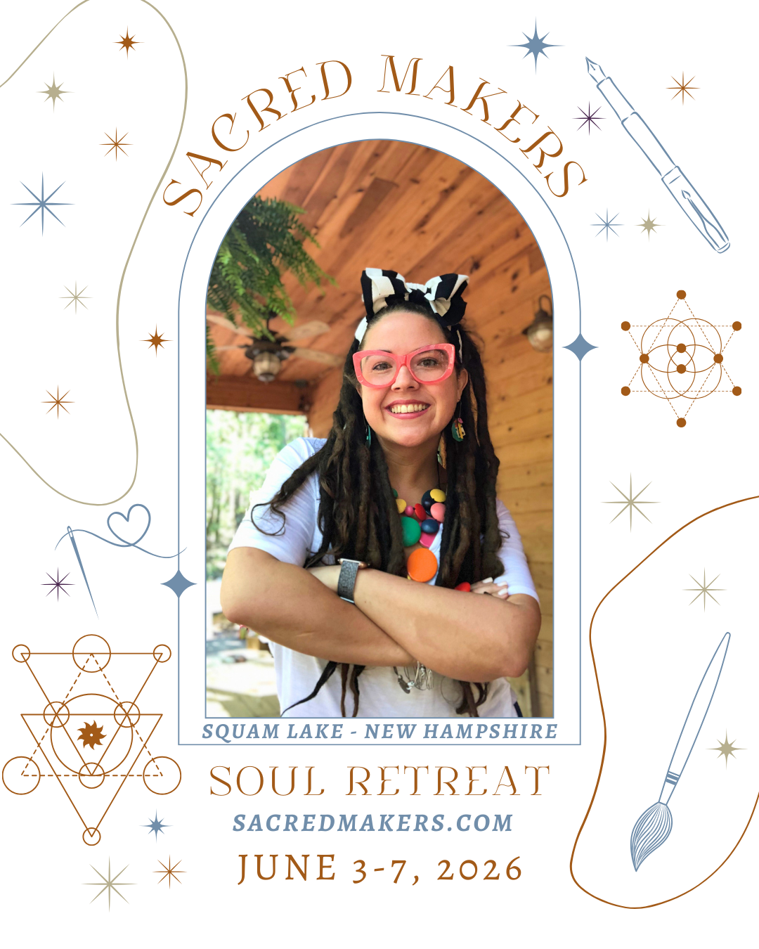 Healing the Creative Spirit: A Mixed Media Workshop In June 2026, I’m headed back to the Sacred Makers Soul Retreat to teach a brand-new session focused on self-compassion and courage. We’ll be diving into the world of mixed media self-portraiture, using everything from water-soluble pencils and acrylics to needle and thread. We’ll spend our time giving form to the hidden and celebrated parts of ourselves, ultimately creating a piece that honors the beauty of our own unique journey. All skill levels are welcome!